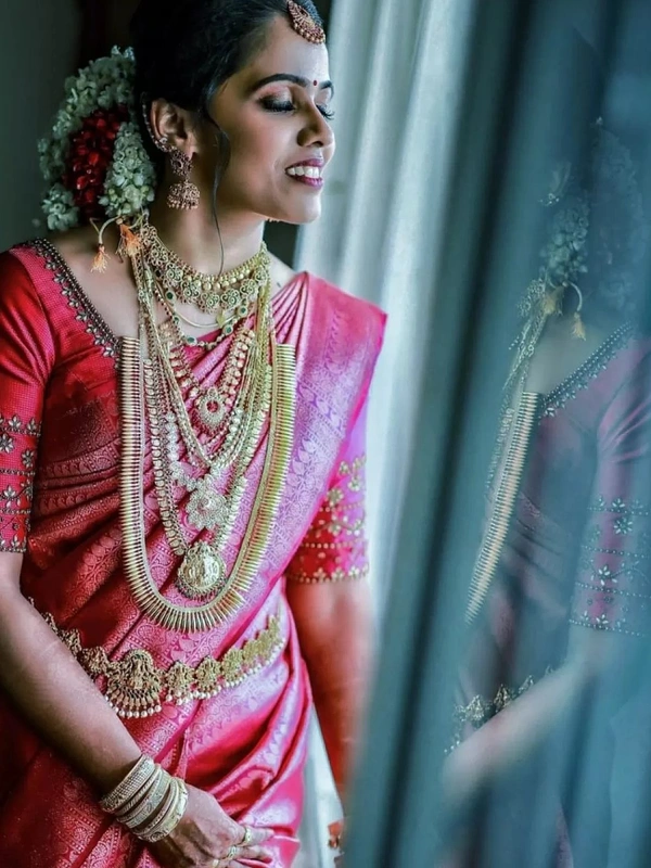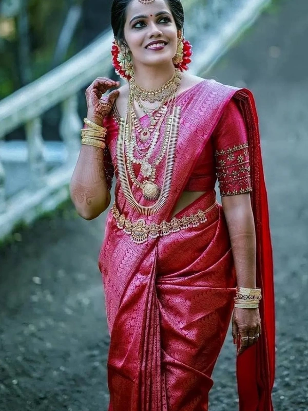Dark pink banarasi kota silk jacquard weaing work wedding saree