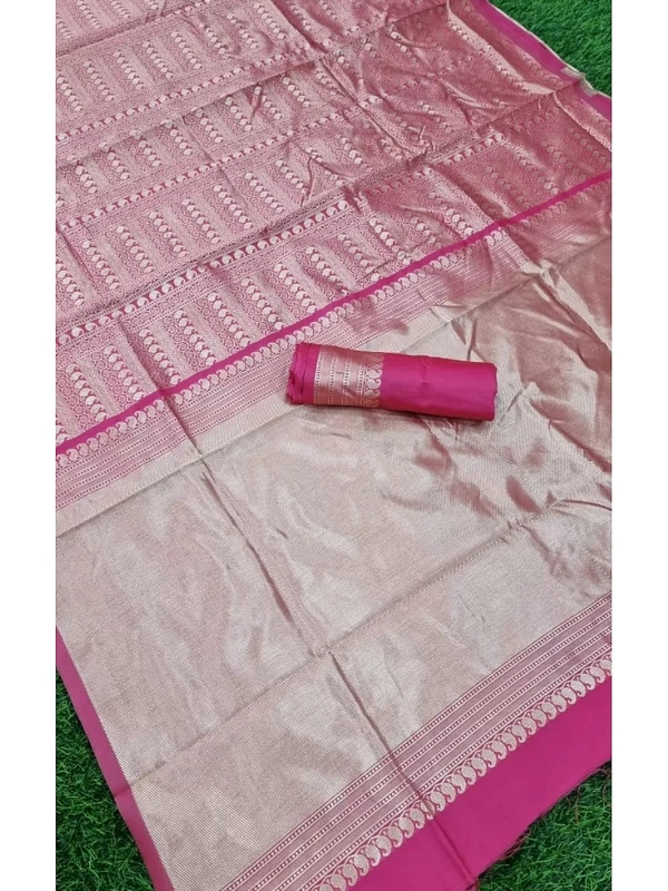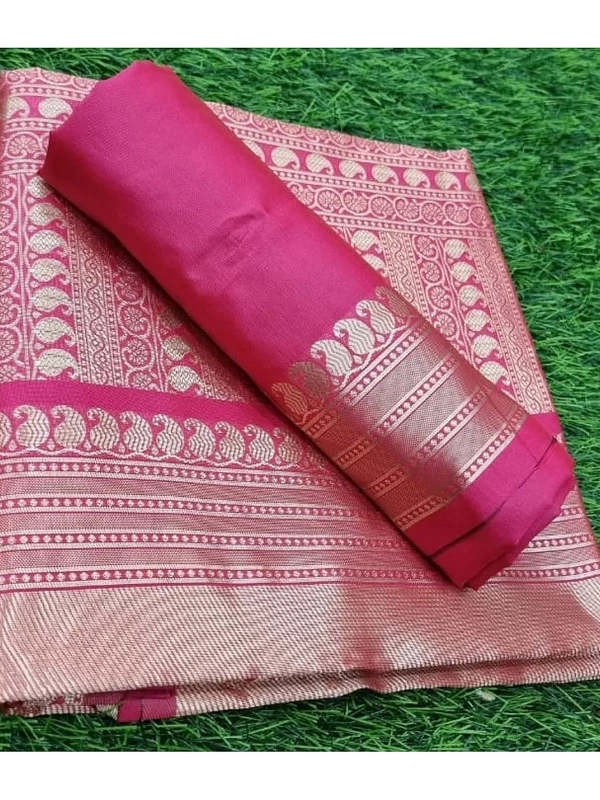 Beautiful Reddish Pink Banarasi Kota Silk With Sparkle Gold Jari & Banarasi Saree With Rich Pallu & Unstitched Blouse For Women Wedding & Casual Wear Also.......